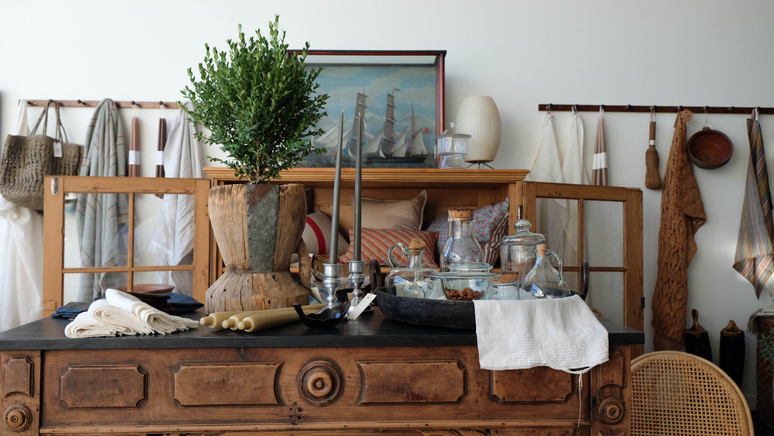 Here at the shop we work hard to bring beautiful and high quality items to our customers. Our curated collection of goods offer timeless beauty and value. We love to mix old with new, shiny with worn. We equally love modern design, proudly offering you some of the best in current makers.