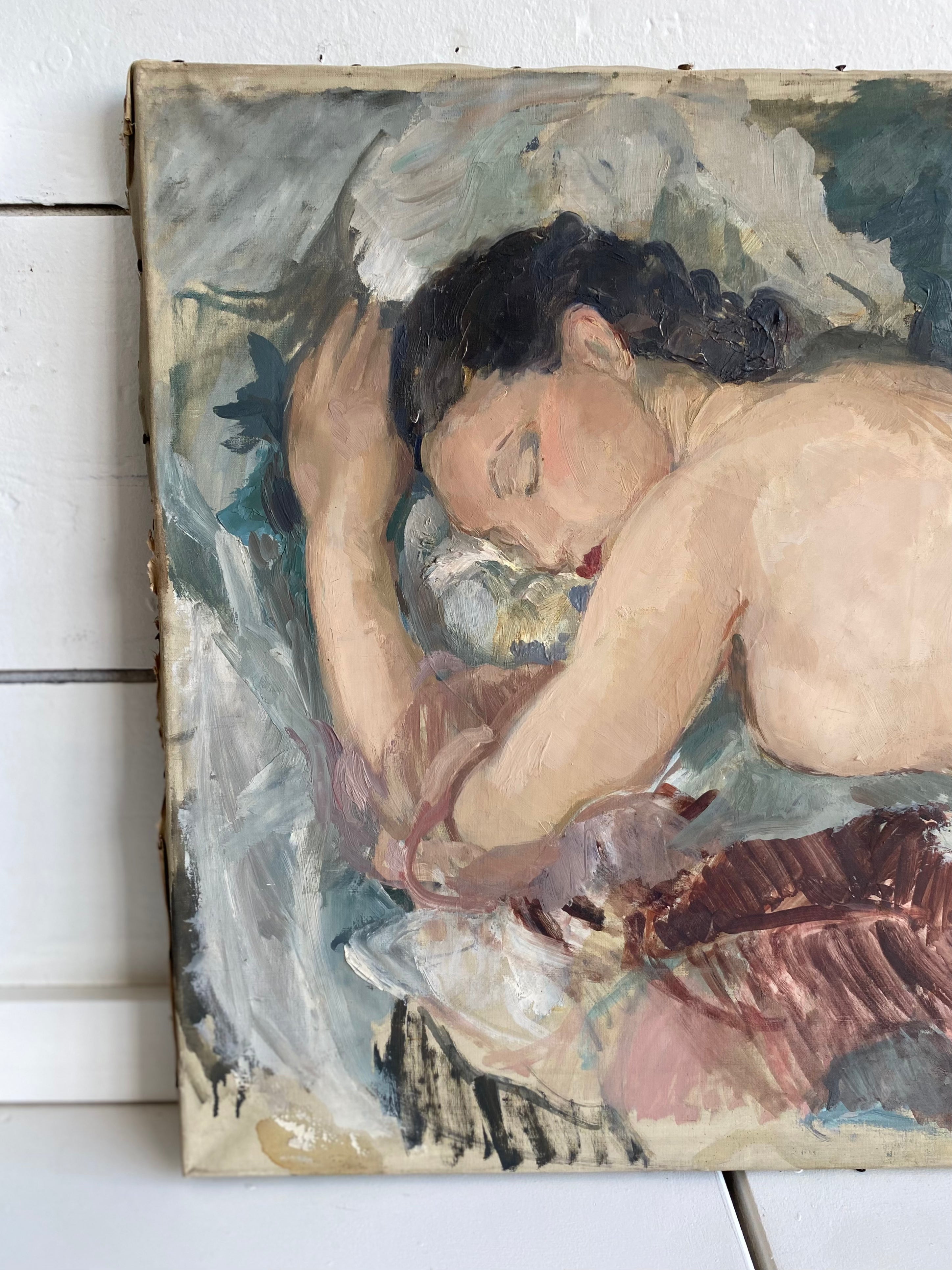 These oil on canvas paintings are done by Madame Vaury, a French artist painting in the 1930's. Both are incredibly beautiful, moody and somewhat fragile.